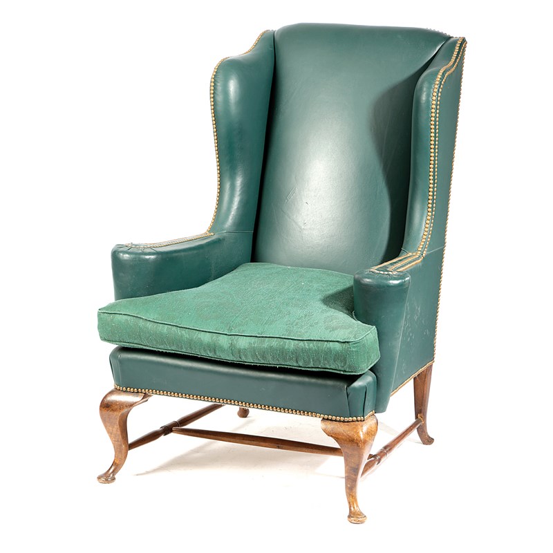 A WING ARMCHAIR IN QUEEN ANNE STYLE
