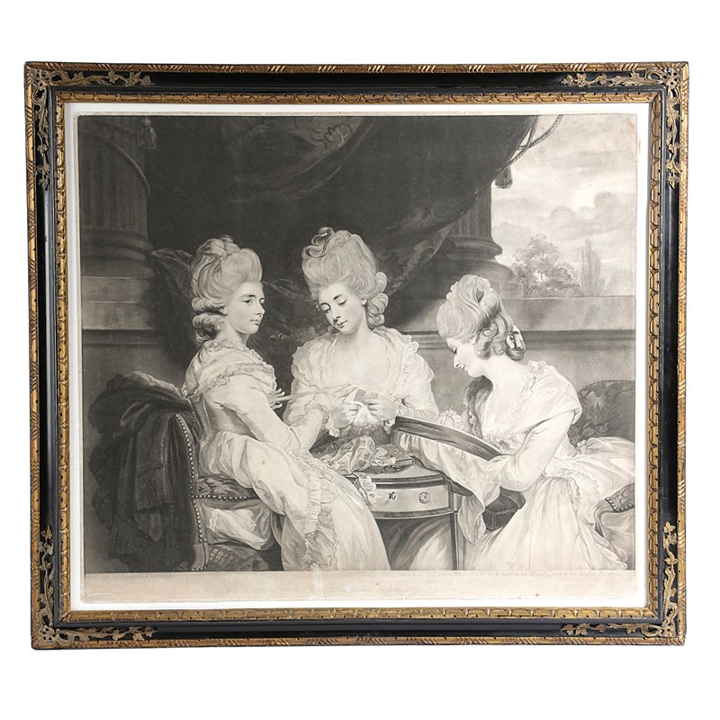 a black and white mezzotint engraving by Valentine Green (1739-1813), 'Published Decr 1st 1781, by V. Green, No.29 Newman Street, Oxford Street, London', in a glazed ebonised and giltwood frame