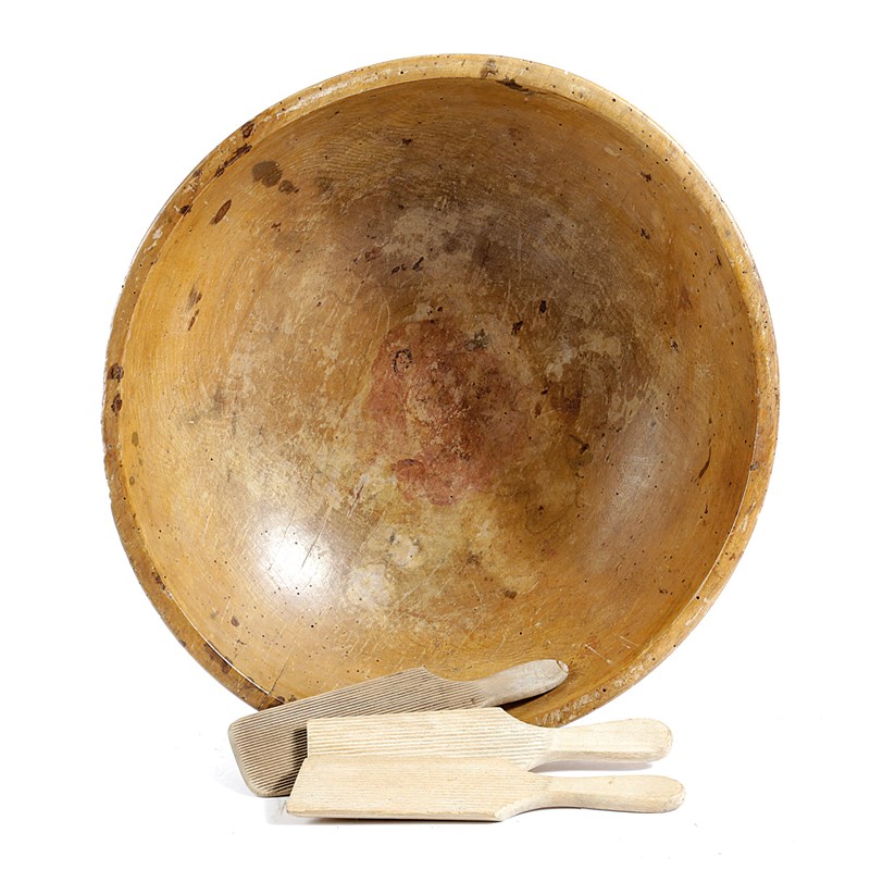 A LARGE TREEN SYCAMORE DAIRY BOWL