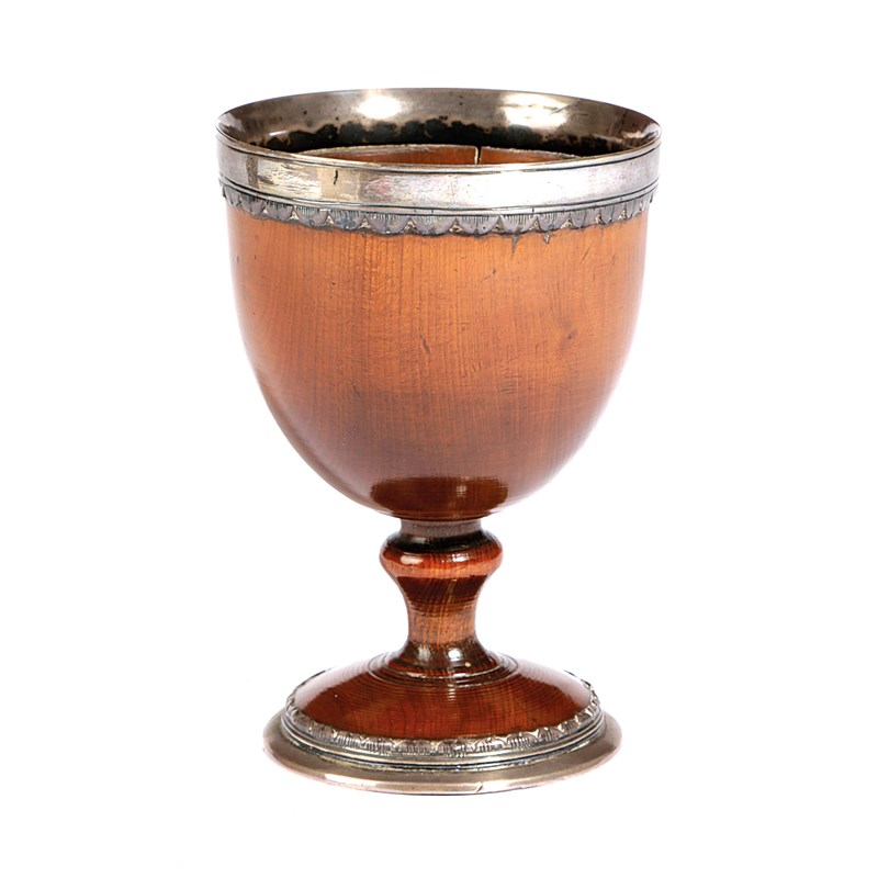 A TREEN SILVER MOUNTED PEARWOOD GOBLET