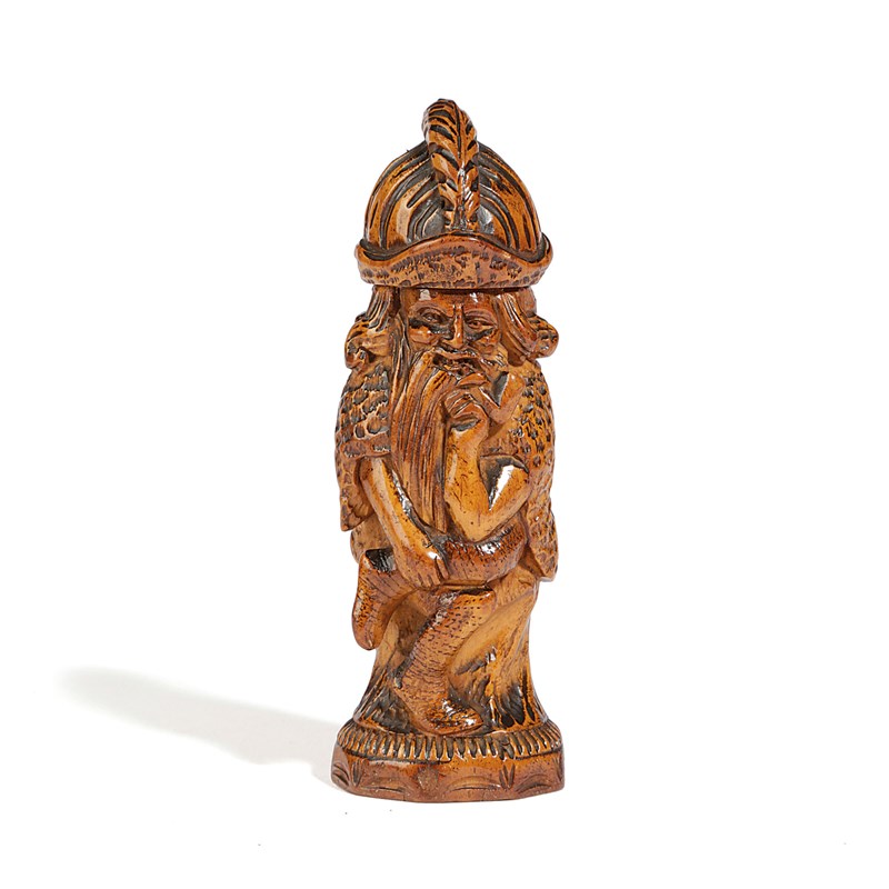 A SWISS TREEN FIGURAL VESTA HOLDER