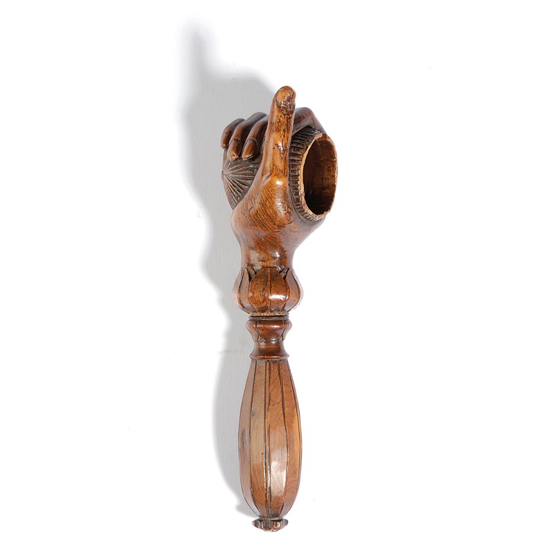 in the form of a hand holding a walnut, with a screw action and a faceted baluster handle