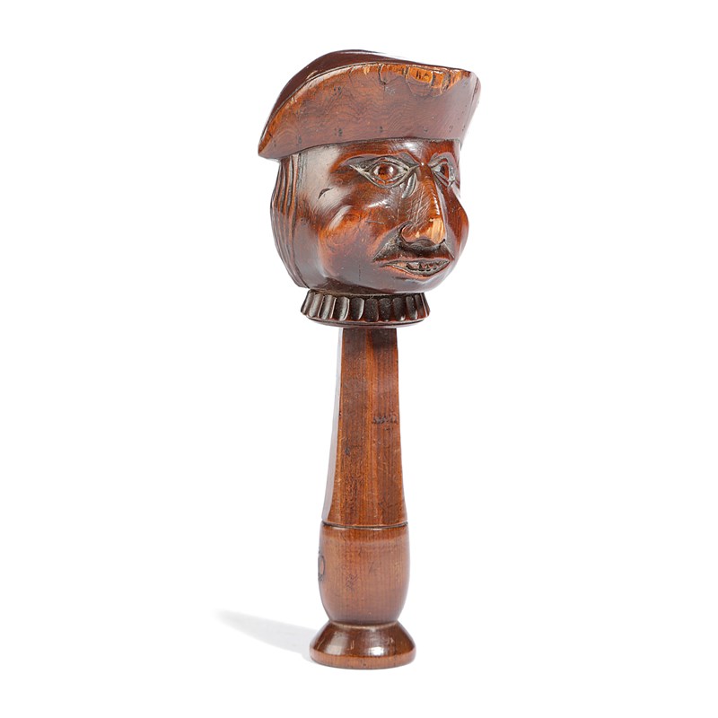 carved as a bust of a man wearing a tricorn hat, with a screw action