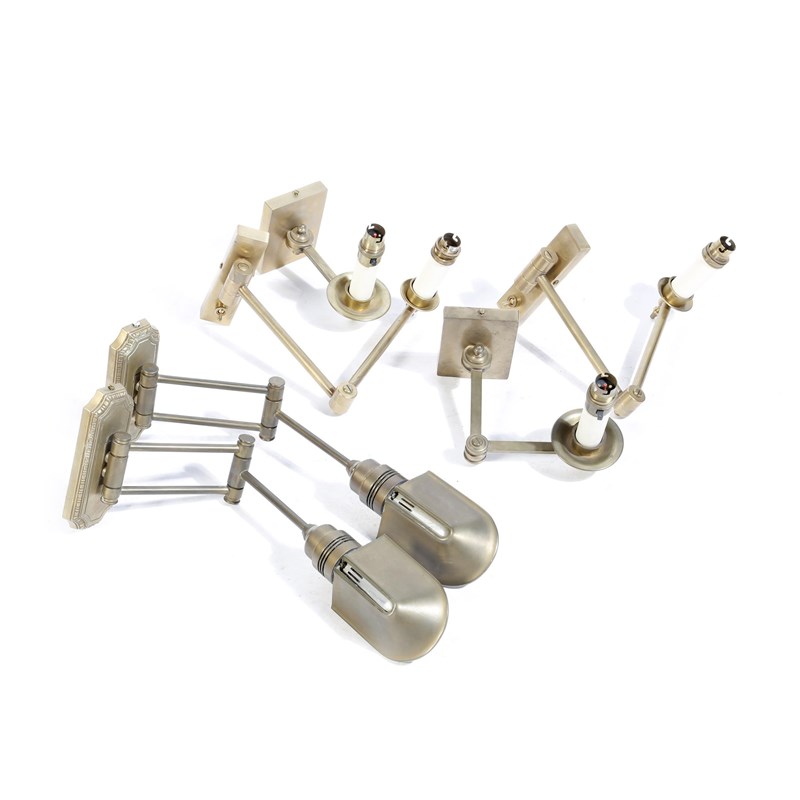 Three pairs of brass adjustable wall lights