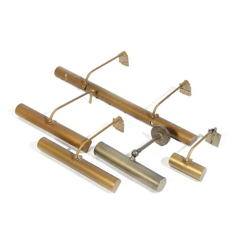 Eight brass and bronzed picture lights