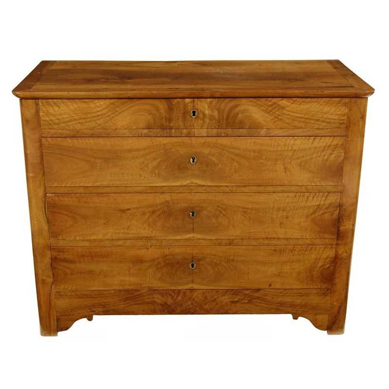 A French provincial walnut commode, the crossbanded top above four graduated drawers, with panelled sides, mid 19th century, 35in (89.2cm) h, 44.75in (113.5cm) w, 21.5in (54.4cm) d.