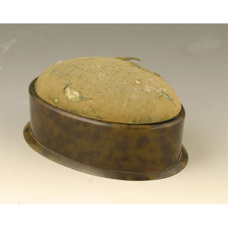 A oval tortoiseshell pin cushion box