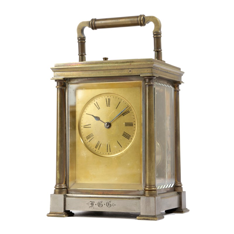 A FRENCH SILVERED BRASS CARRIAGE CLOCK