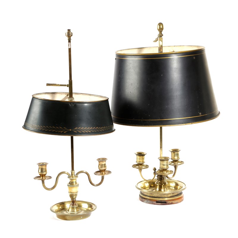 TWO FRENCH BRASS BOUILLOTTE LAMPS