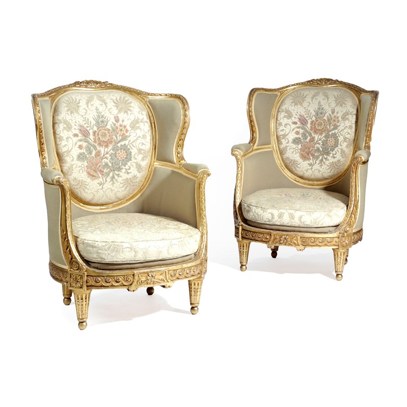 A PAIR OF FRENCH GILTWOOD BERGERES