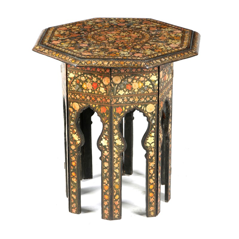 A KASHMIRI LACQUER OCTAGONAL OCCASIONAL TABLE
