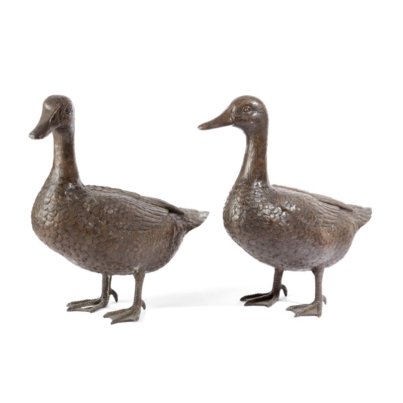 A PAIR OF FLOOR STANDING BRONZE GEESE
