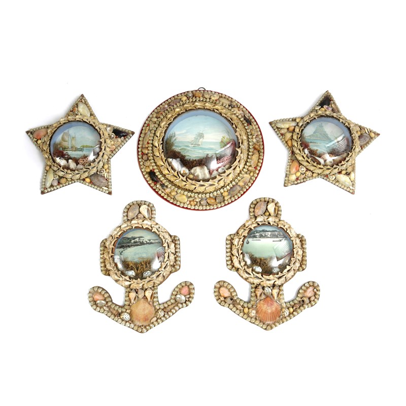 FIVE SAILOR'S SHELLWORK LOVE TOKEN DIORAMAS