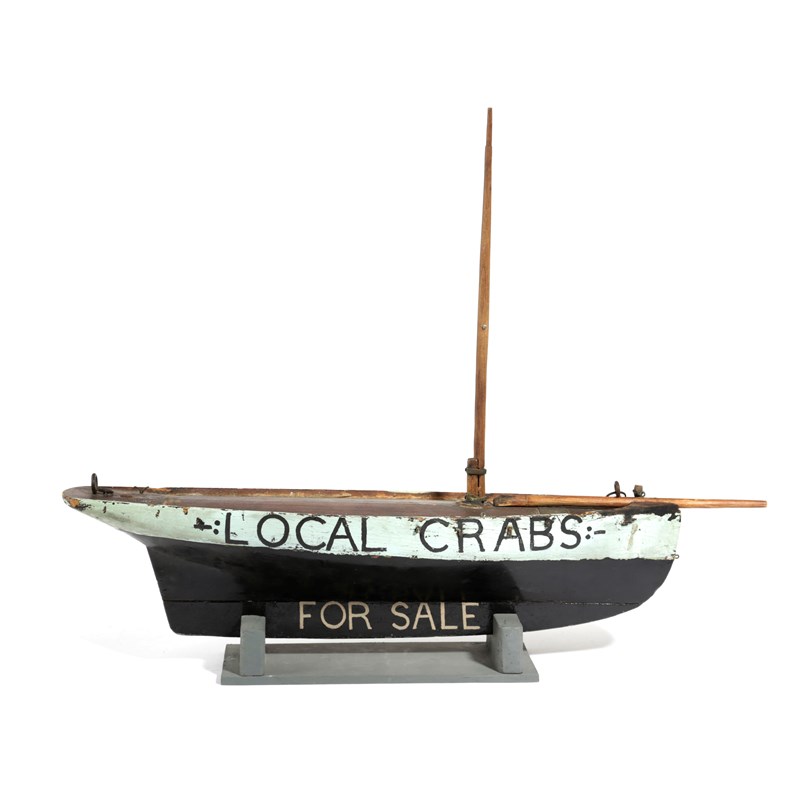 A FOLK ART PAINTED WOOD MODEL CRAB BOAT SHOP SIGN