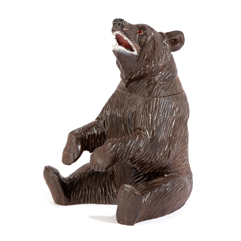 A CARVED WOOD BEAR TOBACCO JAR