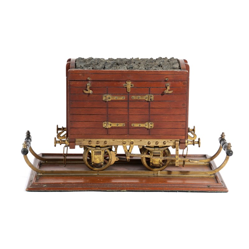 A LATE VICTORIAN WALNUT AND BRASS RAILWAY COAL WAGON HUMIDOR