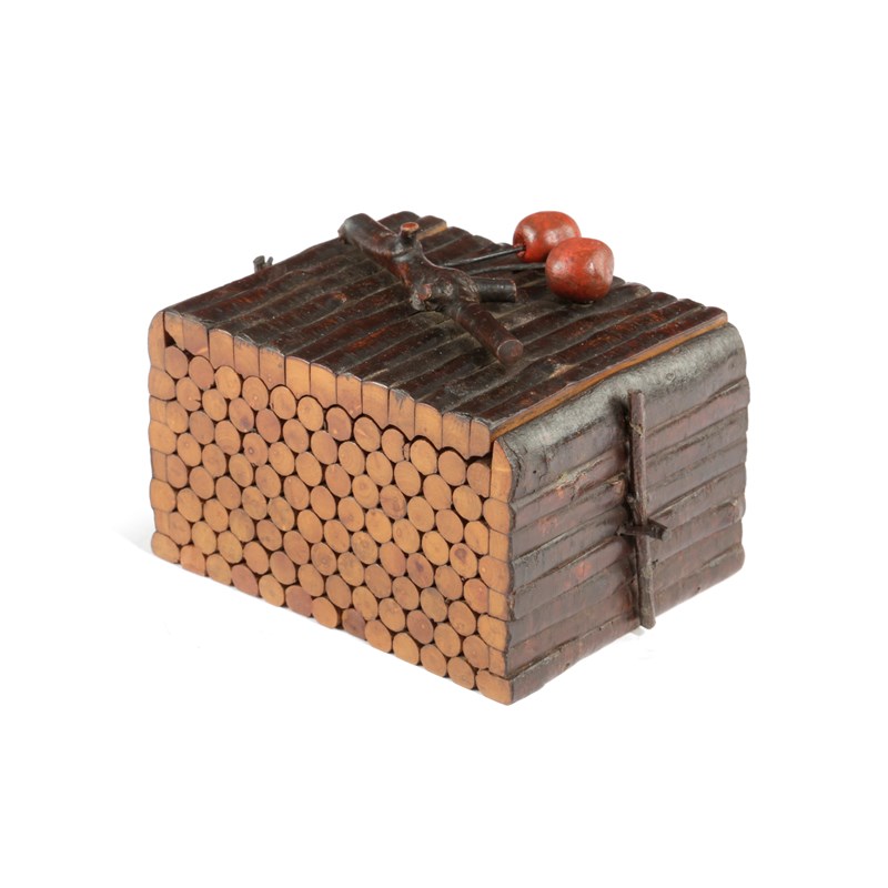 in the form of a pile of logs, the lift-off cover, decorated with cherries
