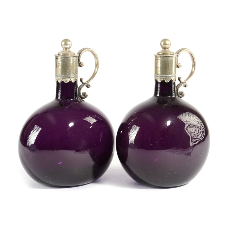 of flagon form with nickel silver plated mounts and a scroll handle (2)