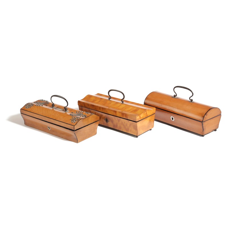 THREE FRENCH SATINWOOD GLOVE BOXES