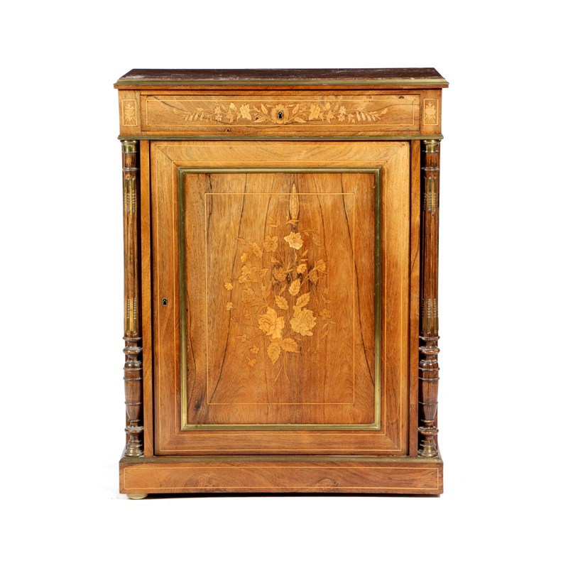 λ A CONTINENTAL ROSEWOOD AND MARQUETRY SIDE CABINET