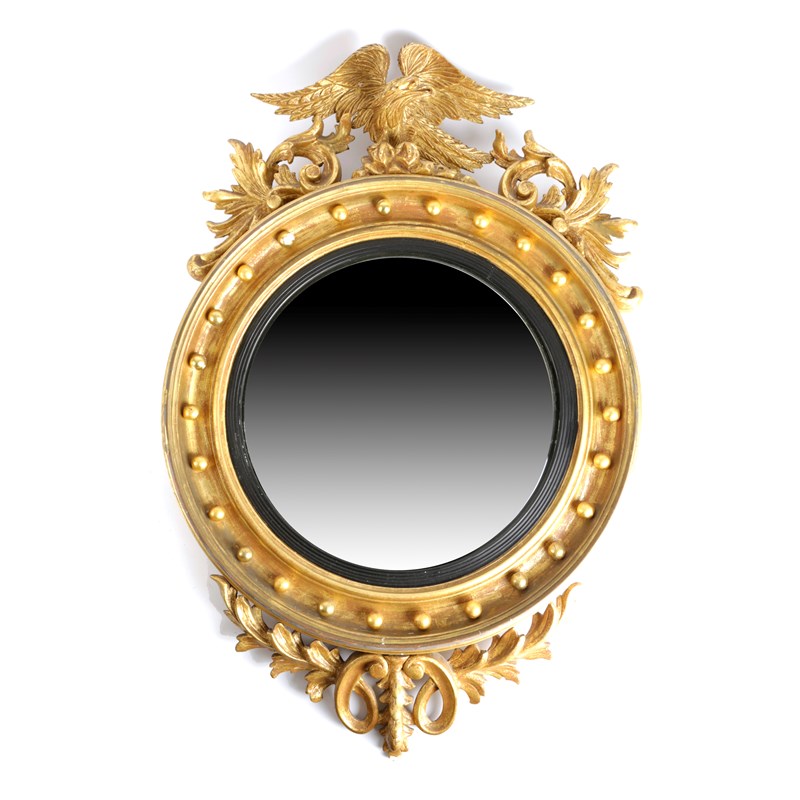 A GILTWOOD AND GESSO CONVEX WALL MIRROR