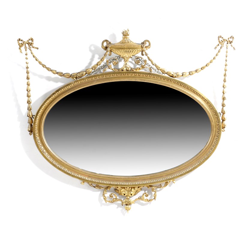 A LATE VICTORIAN GILTWOOD AND COMPOSITION OVAL WALL MIRROR