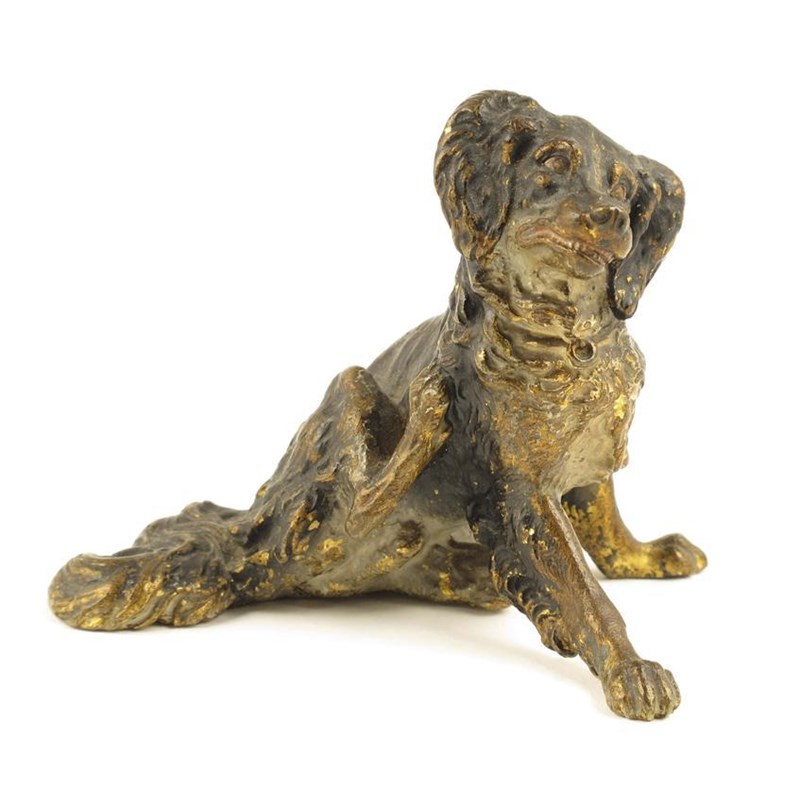 An Austrian cold painted bronze scratching Collie, 3in (7.2cm) h, 3.75in (9.5cm) w.