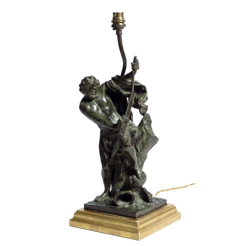 After Jacques Bousseau (French 1680-1740). A bronze figural table lamp modelled with an archer