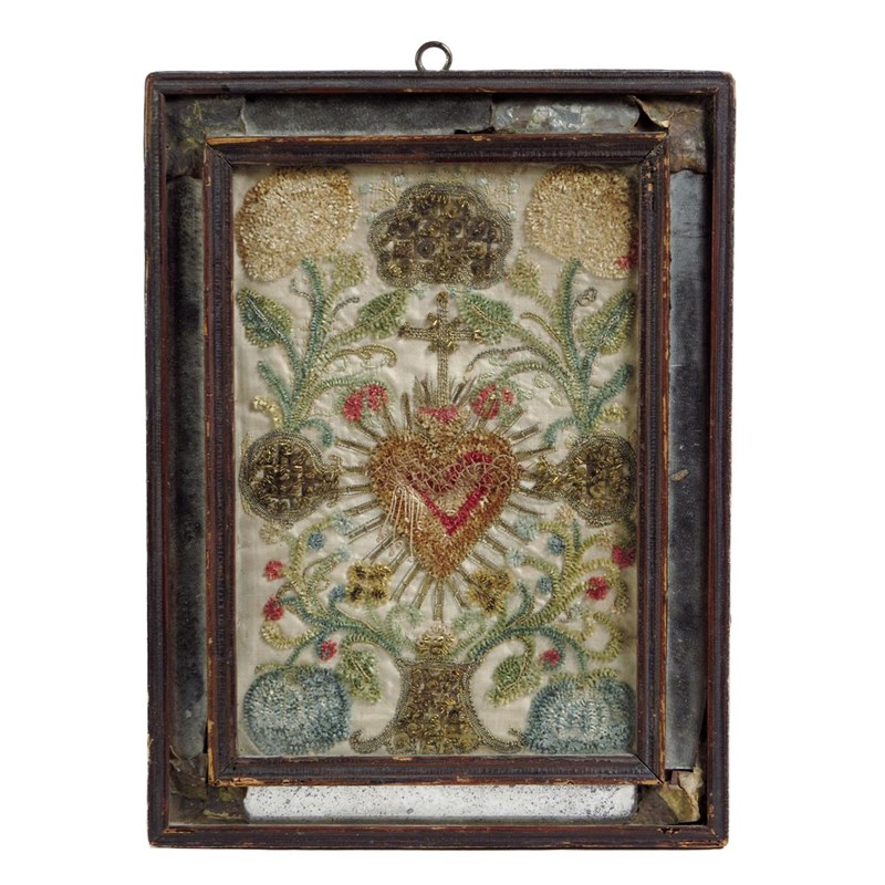 An early 18th century Italian needlework picture of the sacred heart