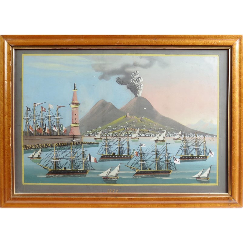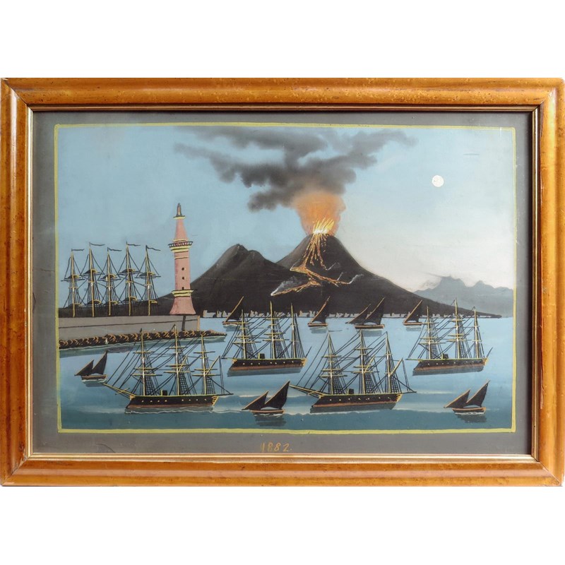 Neapolitan School (late 19th century) Vesuvius smoking and erupting A pair