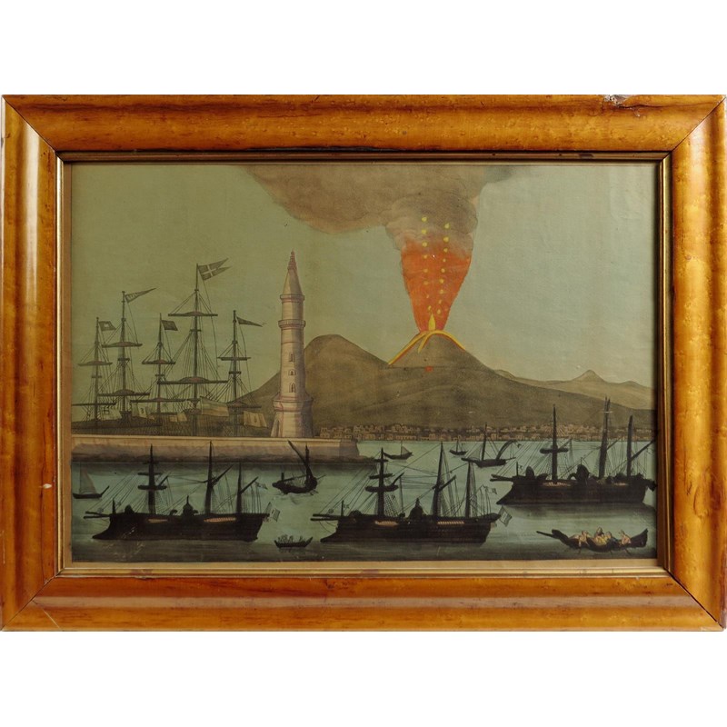 Neapolitan School Vesuvius erupting A coloured lithographic print 40 x 59.2cm In a glazed bird's...