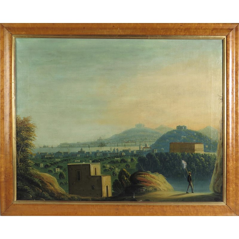 Neapolitan School (19th century) Views of Naples and Vesuvius A pair Oil on canvas 82 x 76cm In...