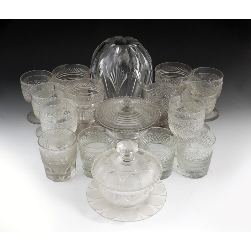 A collection of cut glassware, including: rummers, tumblers, a sweetmeat jar and cover and a vase, 19th century and later, 22cm high (max). (19)