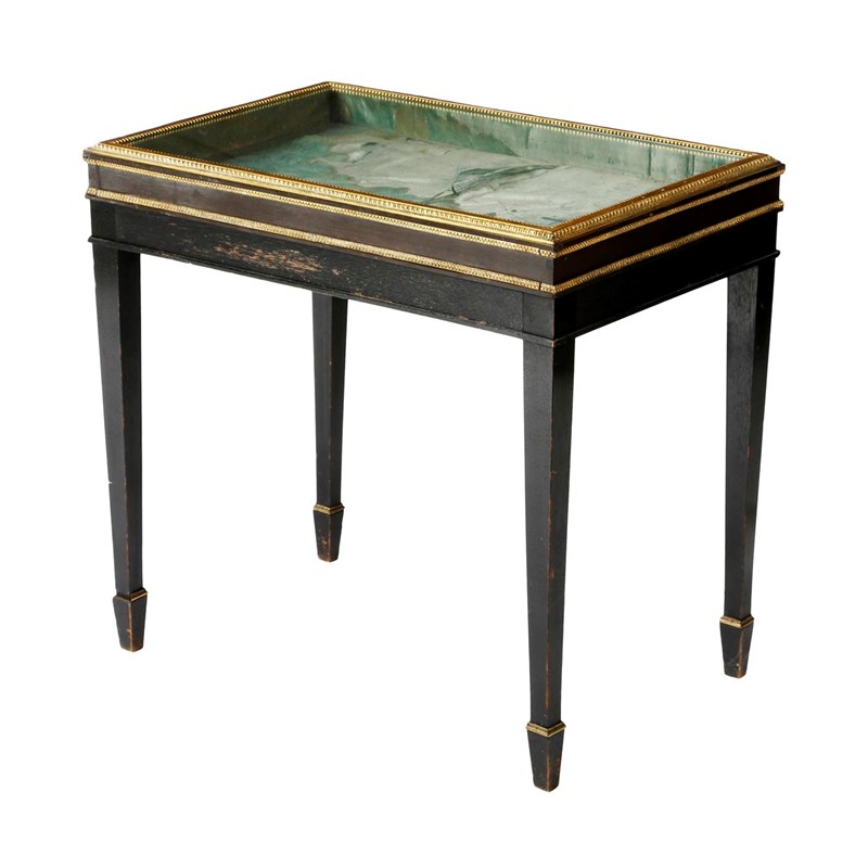 An ebonised and brass bijouterie table