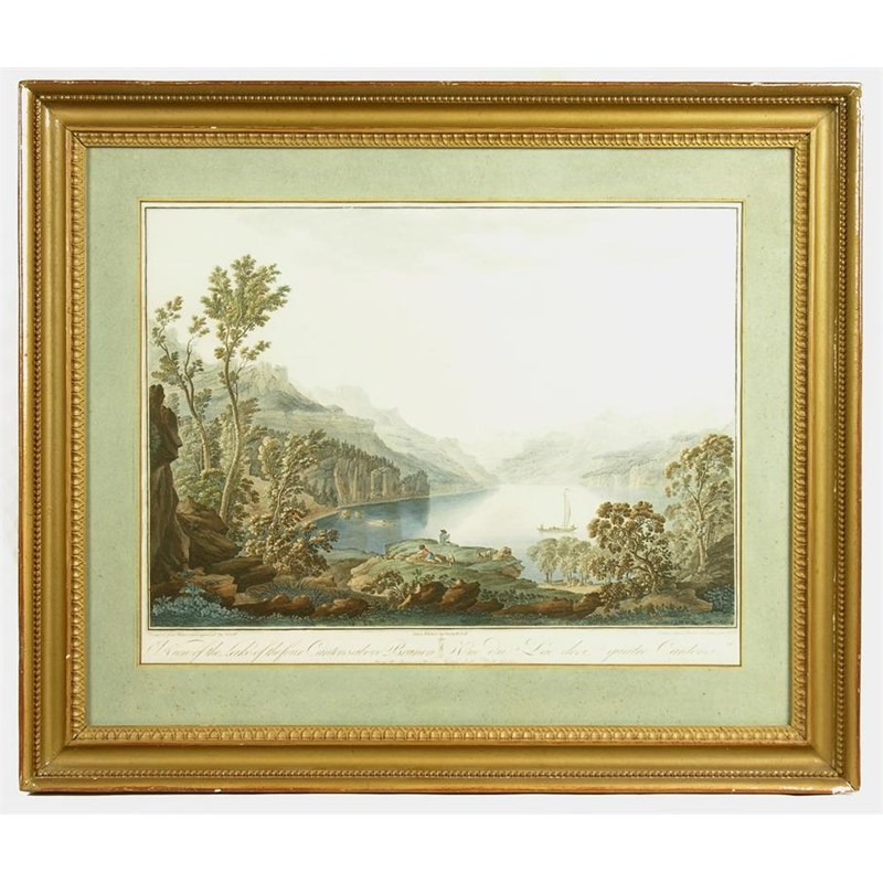 After Troll. 'A View of the Lake of the four Canton above Brunen; A View of the Lake of Sarnen; A View of the Lake of Vallenstade; A View of the Lake of Lauwat', four hand coloured aquatints, London Published Jany 1803, 16.5 x 21.5in (42 x 54.5cm). (4) Provenance; Shrubland Hall, Suffolk.