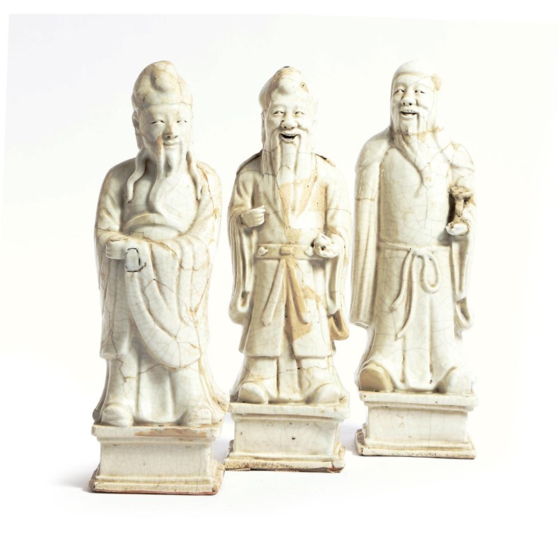 Three Chinese blanc de chine crackle glaze figures of immortals