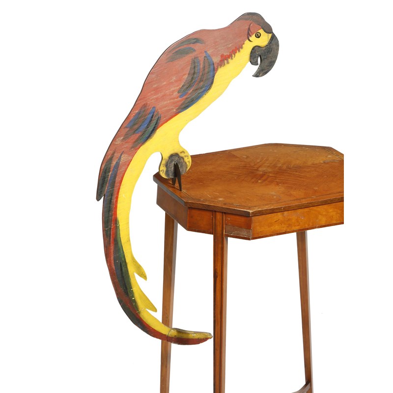 A fret carved and polychrome decorated rocking model of a parrot, 64.8cm high.