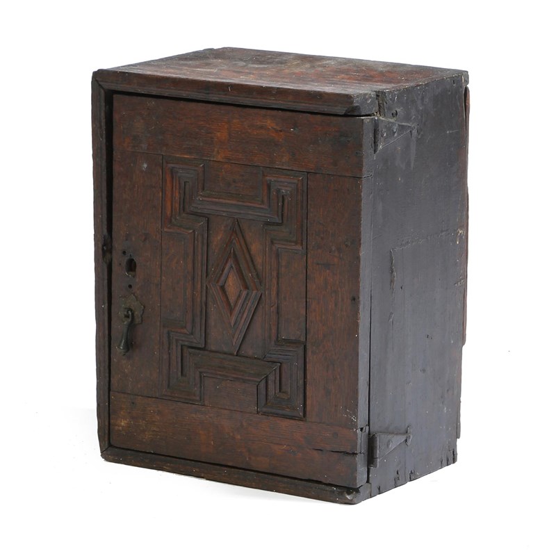 A William and Mary oak spice cupboard