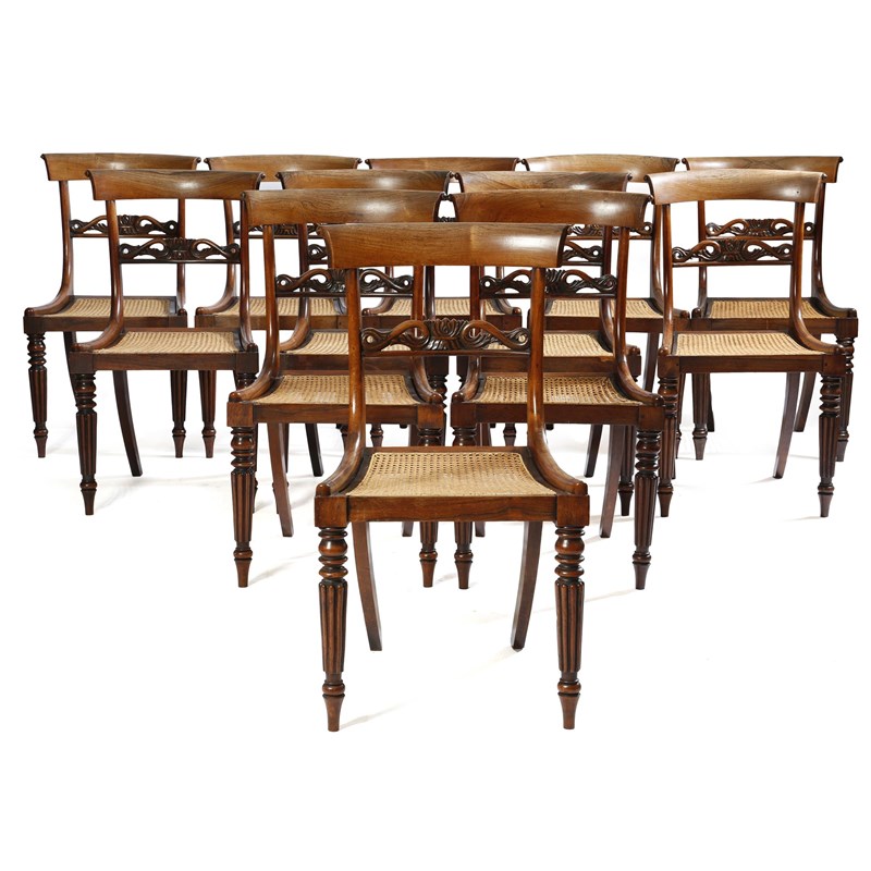 λ A set of twelve late Regency rosewood dining chairs attributed to Gillows