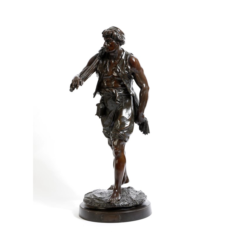 Emile Louis Picault (1883-1915). A bronze figure of a fisherman