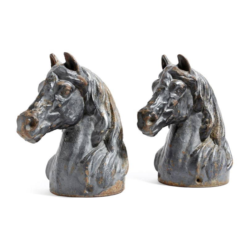 A pair of Victorian cast iron horse tethers, in the form of a horses' head, painted black, 27cm high. (2)