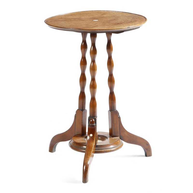 λ A Victorian walnut occasional table, inlaid with ivory rondels, with a circular dished top, on a tripod base, 66.4cm high, 48cm wide.