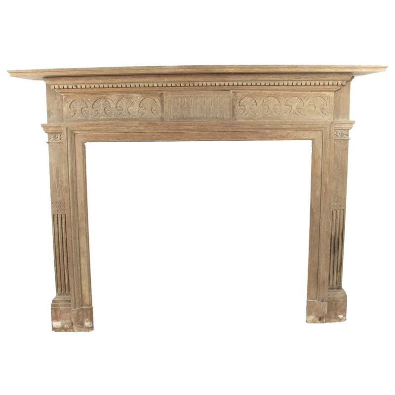 A late Victorian oak fire surround, with dentil mouldings above a frieze carved with a band of wheat sheaves and centred a stop fluted tablet, 54.5in (138cm) h, 71.75in (181.8cm) w, 11in (28cm) d, aperture: 40 x 46in (101.5 x 117cm).