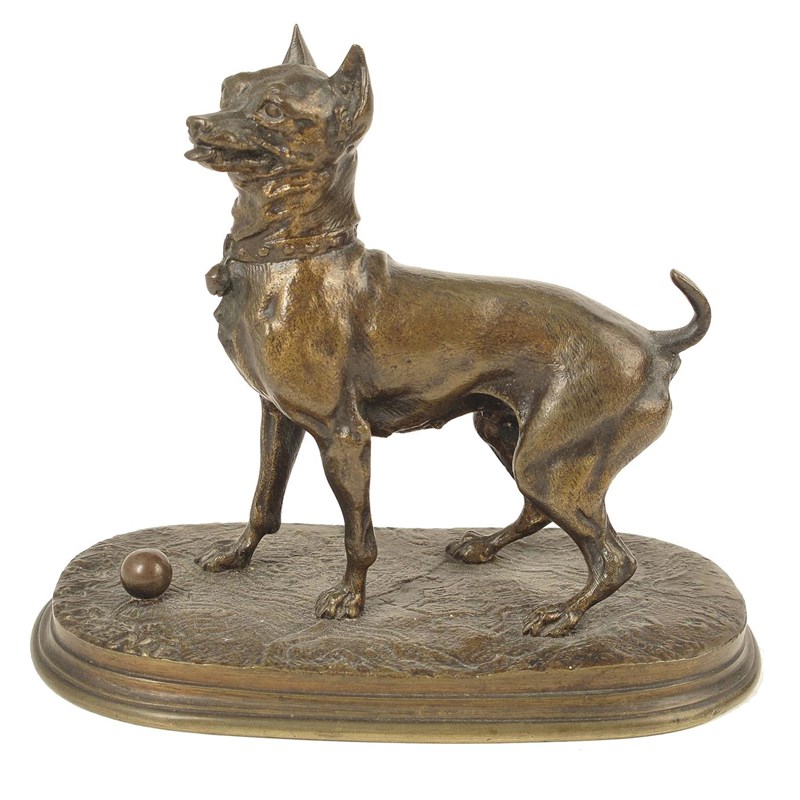 Pierre Jules Mene (1810 - 1879). Cropped-eared Terrier with ball