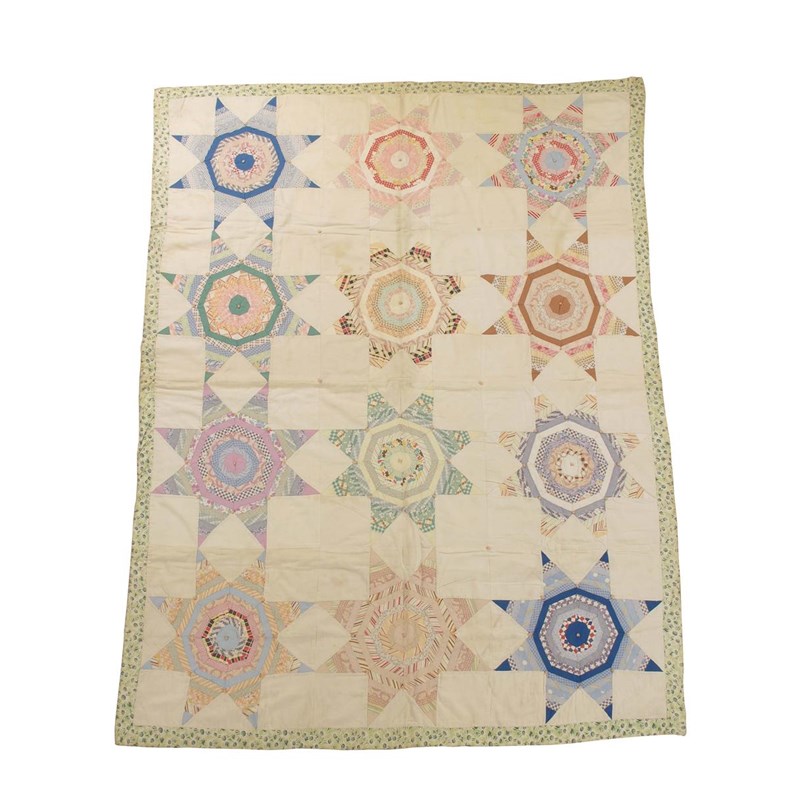 A twelve star quilt, c.1920, 84 x 66in (213.5 x 167.5cm).