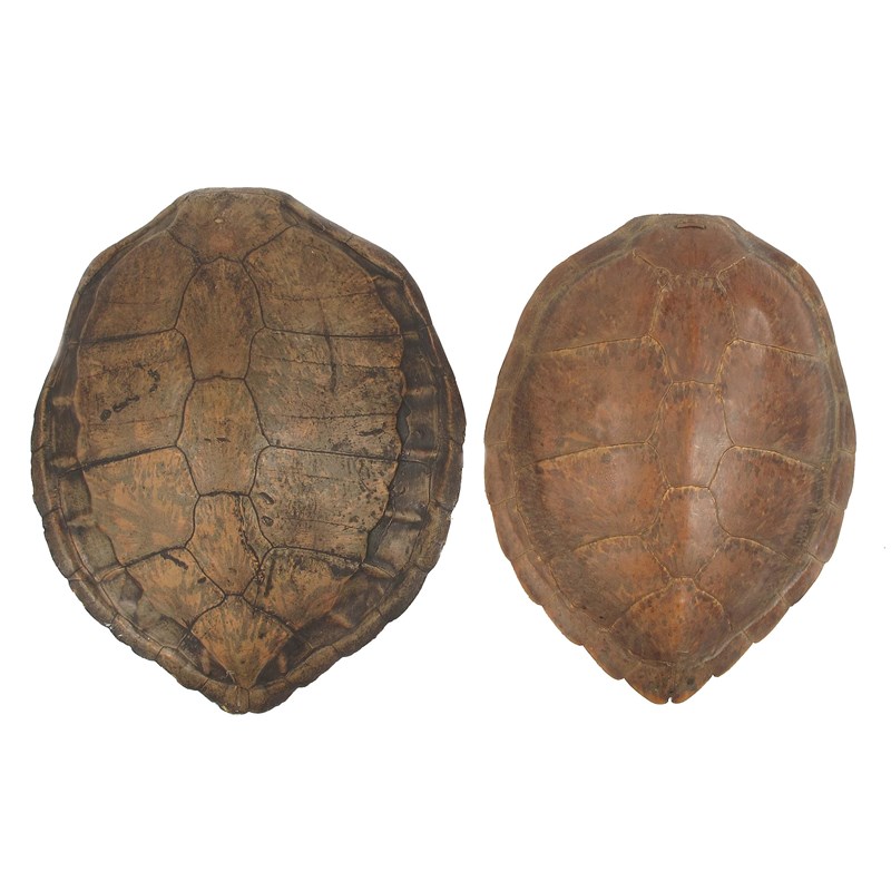 Two turtle shells, late 19th century, 26in (66cm) and 24.25in (61.4cm) l. (2)