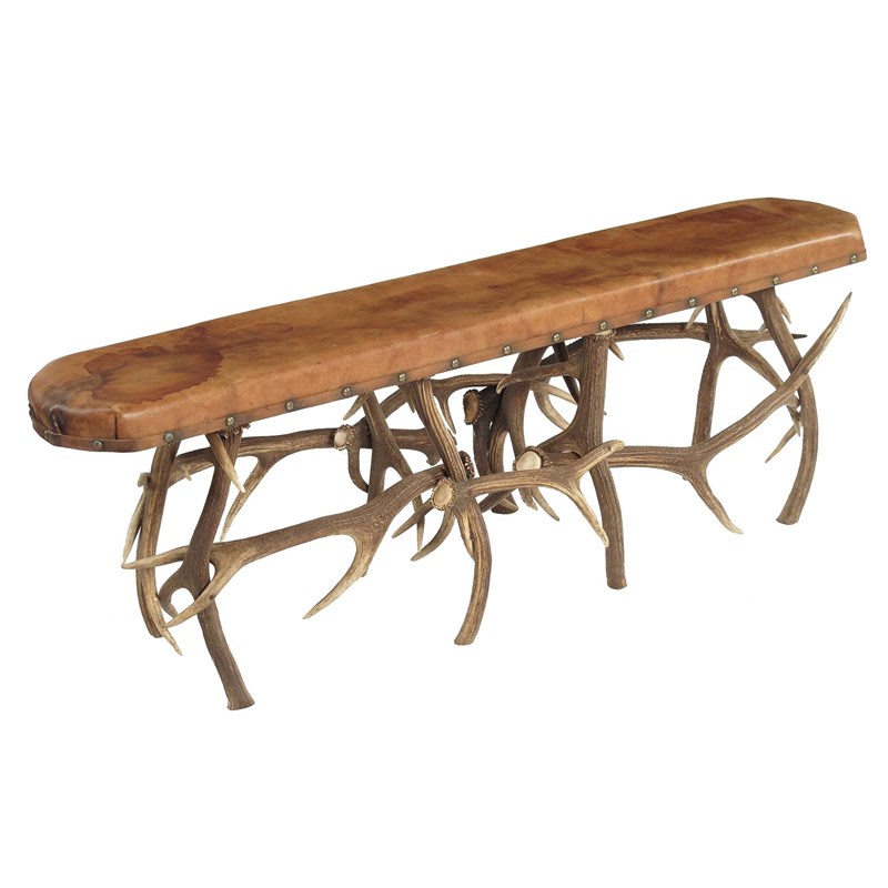 An antler horn stool, with a padded leather seat, late 19th / early 20th century, 18.75in (47.7cm) h, 55in (139.8cm) w.
