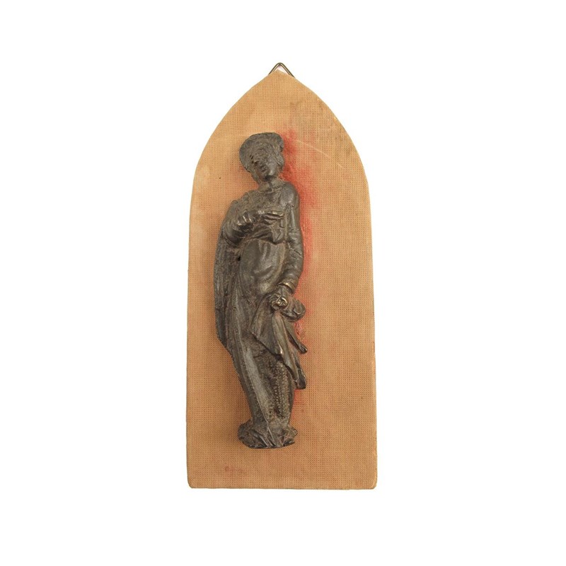 A 17th century bronze figure of a saint, 4.5in (10.9cm) l. Provenance: The Silk Collection.