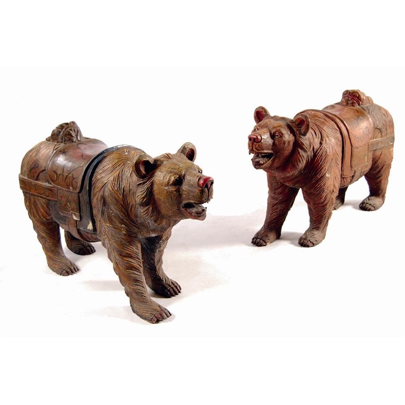 A pair of Black Forest style carved wood and polychrome decorated bears