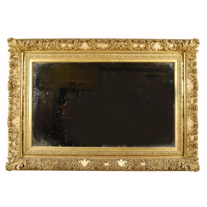 A rectangular wall mirror, the 19th century leaf carved giltwood frame (originally a picture frame) to a later plate, 36 x 52.25in (91.6 x 132.7cm). Losses to gilt.